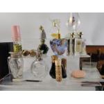 Super little lot of pretty perfume bottles, atomisers etc, some with contents. Comes with two small jewellery boxes and contents. An interesting little lot.