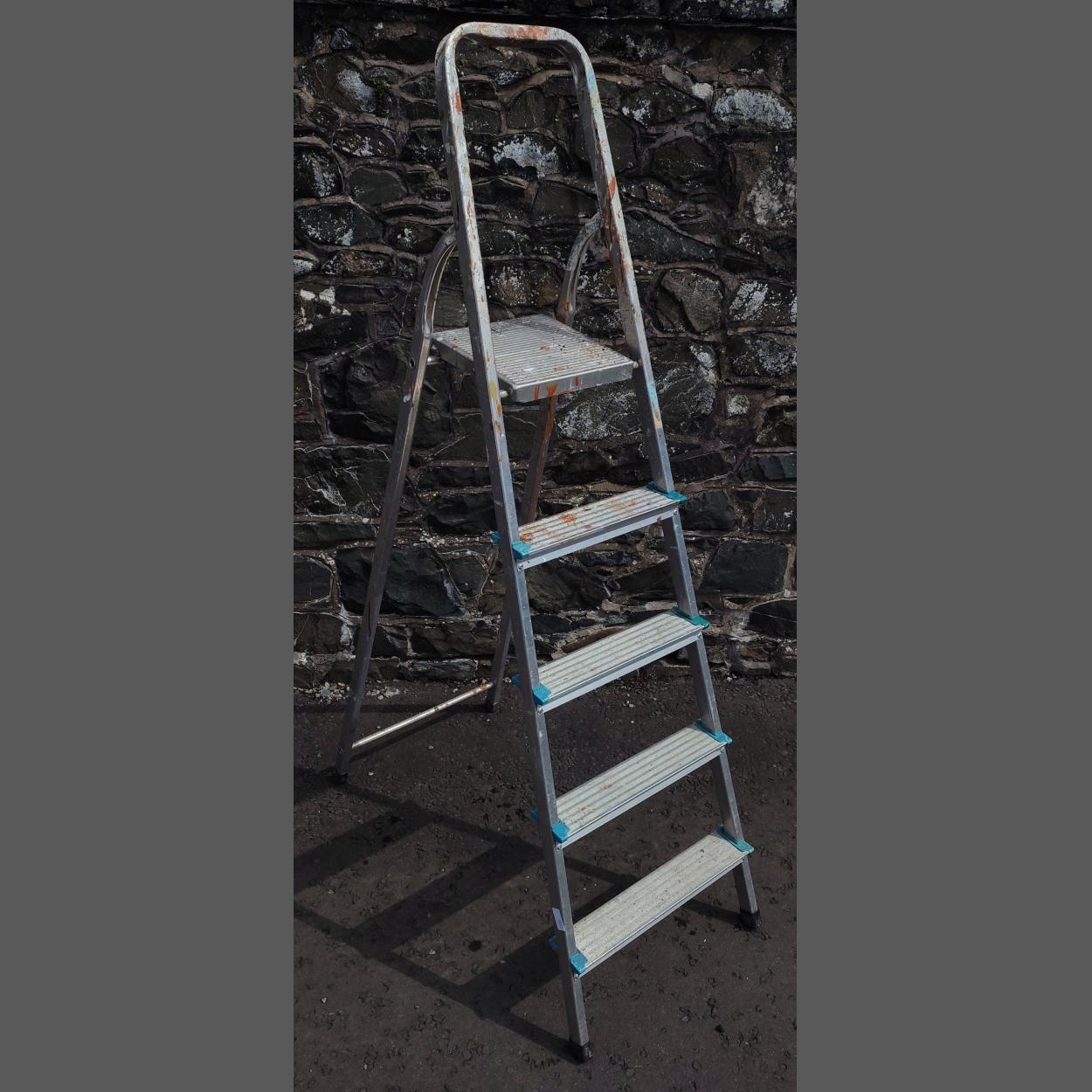 A set of folding five step ladders in good useable condition.