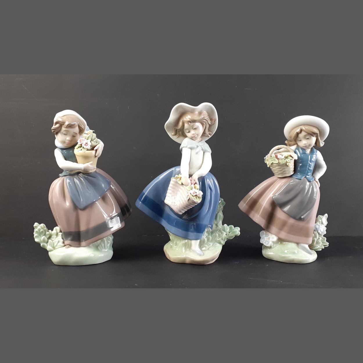 Three LLADRO figures of pretty girls, all in good condition. 18cm tall approx.