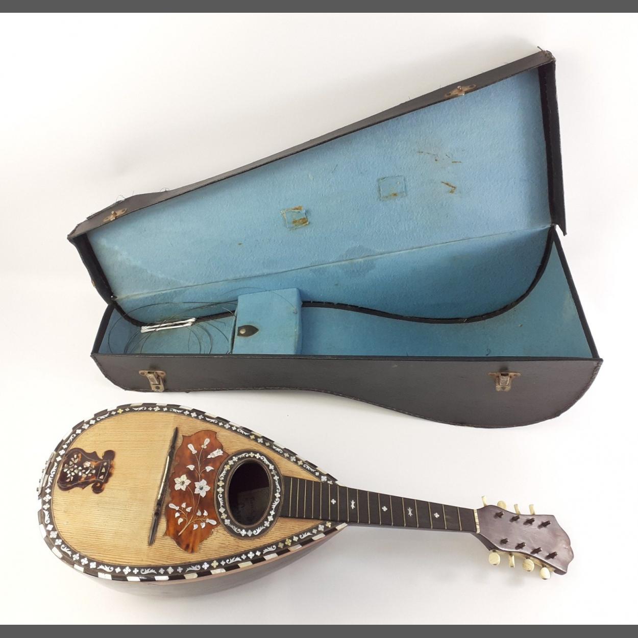 A beautiful eight string CARLO CRISPI Napoli bowl mandolin with intricate Mother of Pearl inlay. Currently unstrung but in good condition, supplied in original case.