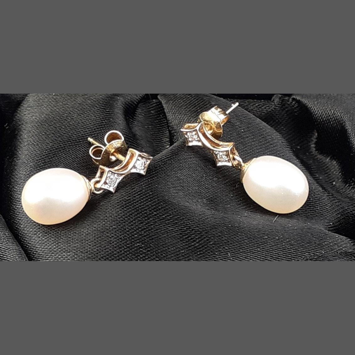 Gorgeous 585 stamped 14K gold earrings with pearls and small diamonds. Gross weight 2.3g approx