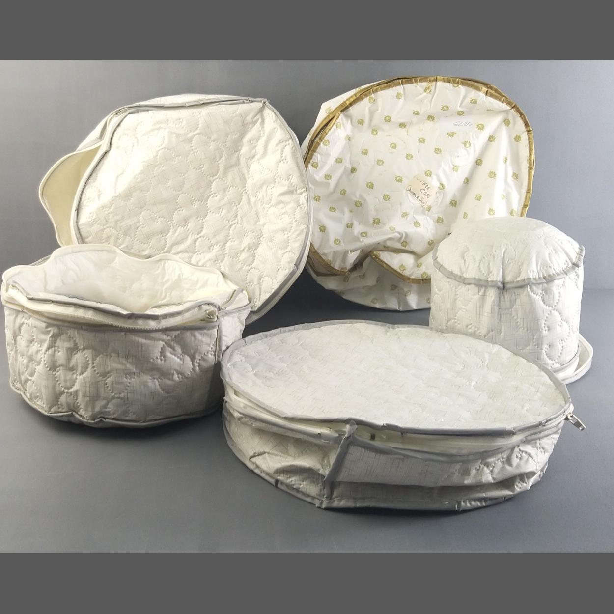 Protect your precious dinner service with these zipped padded plate storers with dividers for dinner plates, salad plates, saucers, and cups. Five pieces in total.