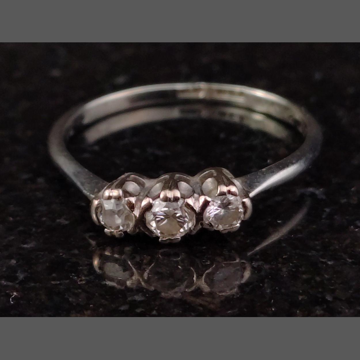 An 18ct and platinum white gold band with 3 diamonds (tested) largest 2mm approx. Size O, gross weight 1.95g approx