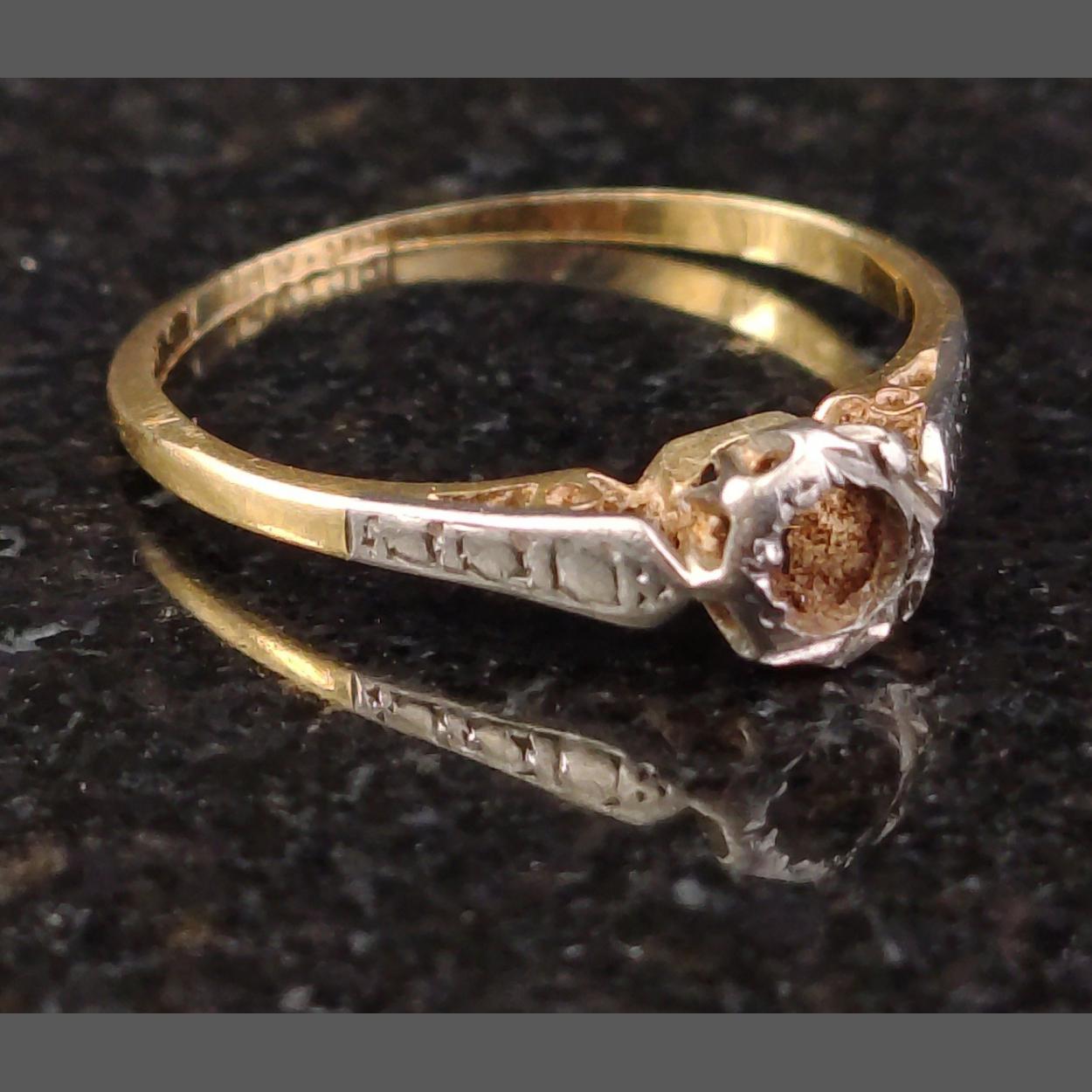An 18ct and platinum gold band with missing centre stone. Size K, gross wight 1.35g approx
