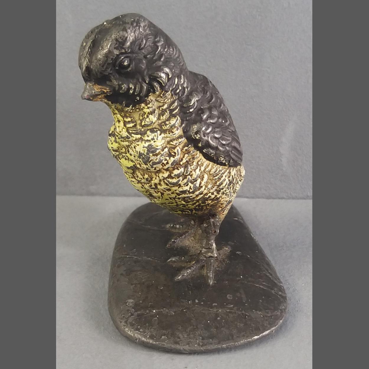 A lovely cold painted bird on stand. A cute wee chap standing 8cm tall approx. No obvious maker's stamp but nicely sculpted. Note bird is slightly loose on base.
