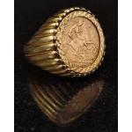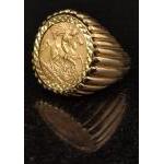 A SHOW-STOPPER! A KING EDWARD Vll 1907 HALF SOVEREIGN mounted within a SUBSTANTIAL 375 stamped ring mount - weight 13.11g approx - ring size U