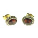 Faintly/rubbed 375 stamped pair of earrings with large oval shaped single centred GORGEOUS GARNETS in each - gross weight 1.90g approx