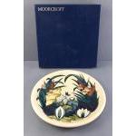 MOORCROFT plate in Moorcroft box in 'Lamia' pattern with green and yellow flowers. W: 26cm approx