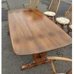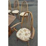 ERCOL six place dining table with chairs. All in good condition. Chairs with detachable light cream seat pads. Table is 178cm wide approx.
