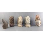 A collection of decorative items to include African stone head bookends (18cm approx) and other African stone decorative heads. Minor chips noted.