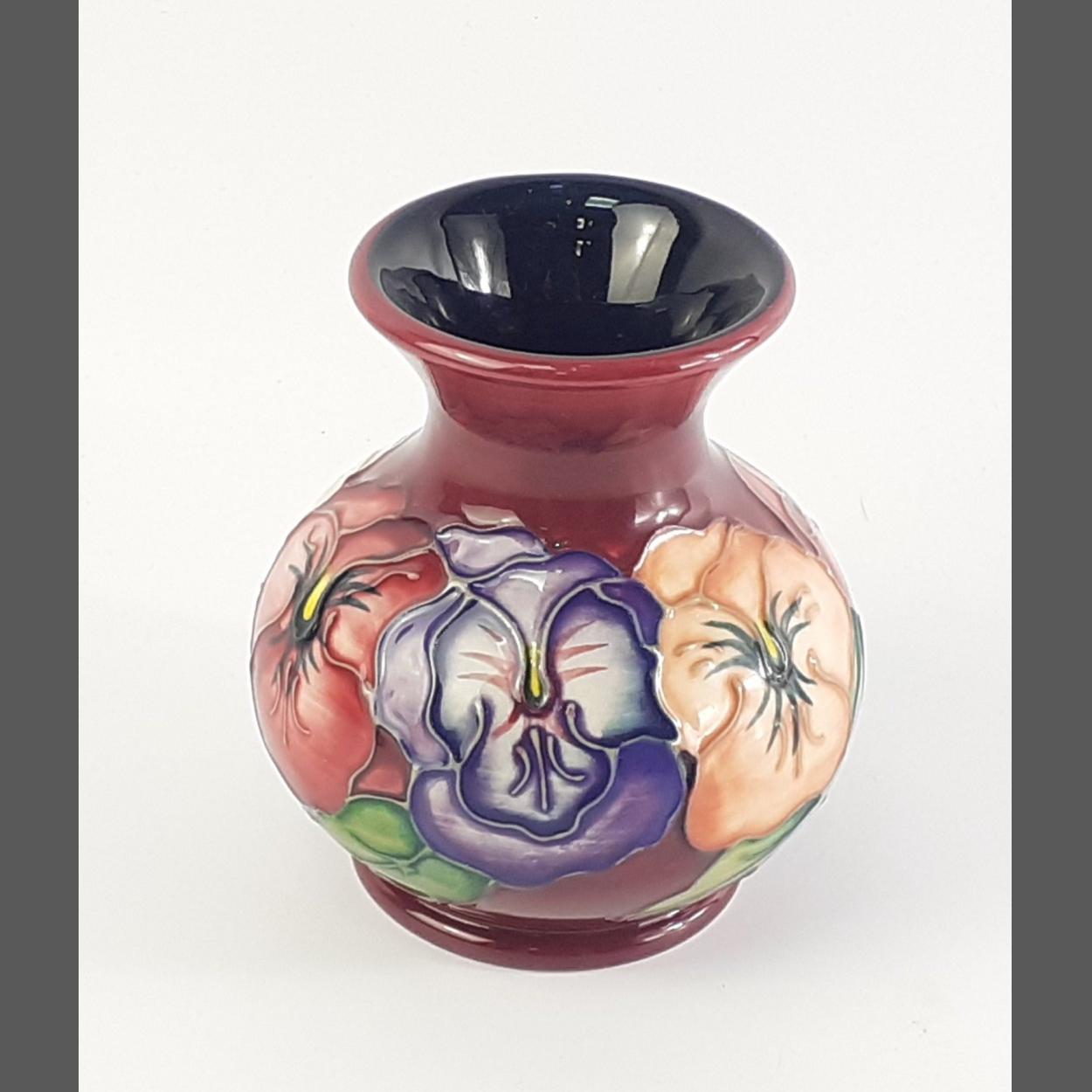 A small MOORCROFT vase 10cm approx, copyright '93. No damage.