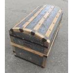 A dome -topped banded travel trunk measuring W85 x D52 x H56cm approx