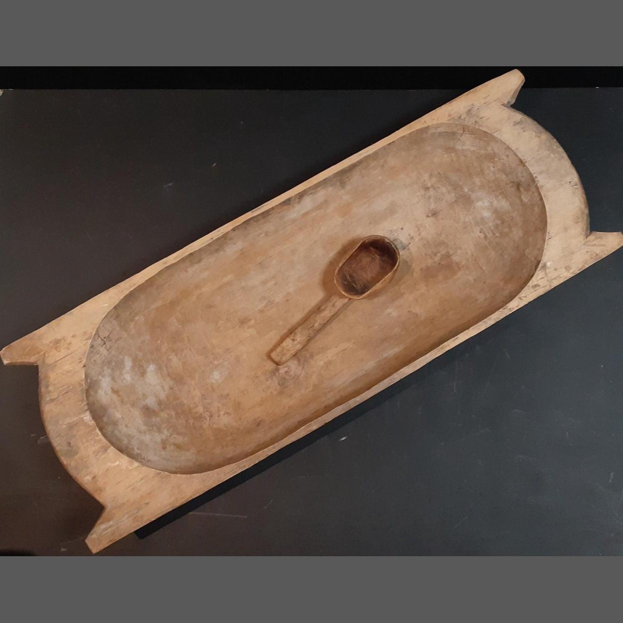 ANTIQUE - An intriguing large carved wooden dough trough. - 90cm across. Displays very well.