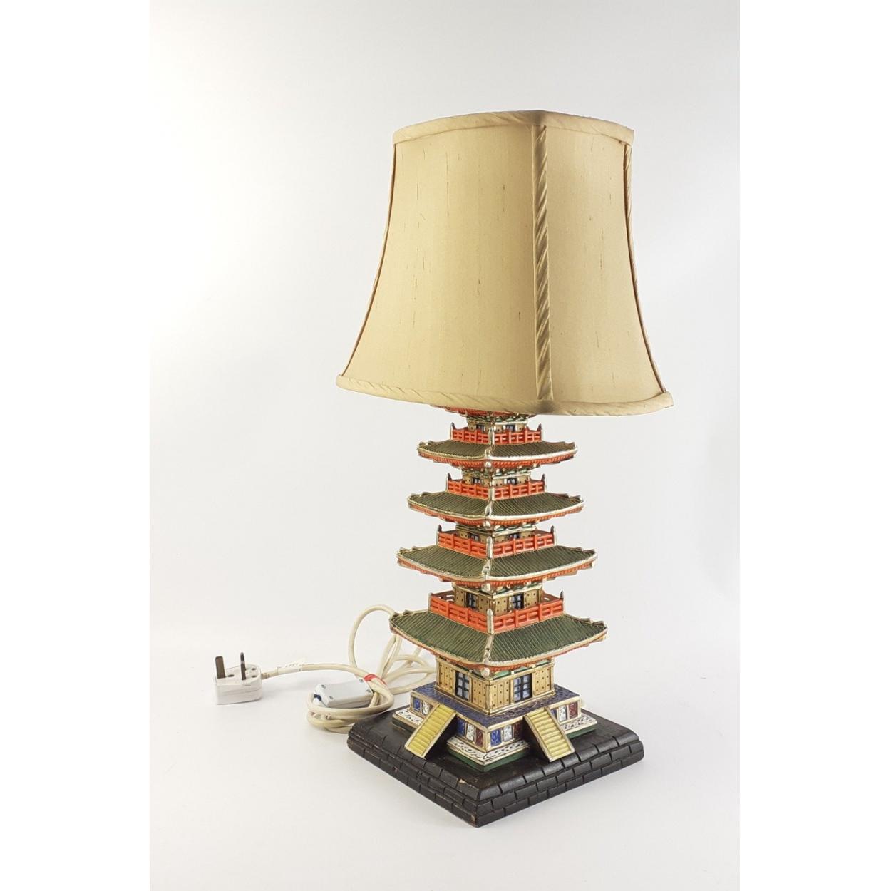 A PAGODA base ceramic table lamp standing approx 55cm high. Nicely sculpted, an interesting piece.