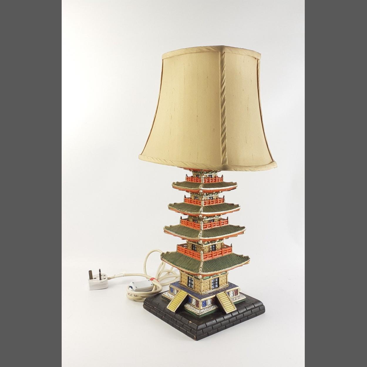 A PAGODA base ceramic table lamp standing approx 55cm high. Nicely sculpted, an interesting piece.