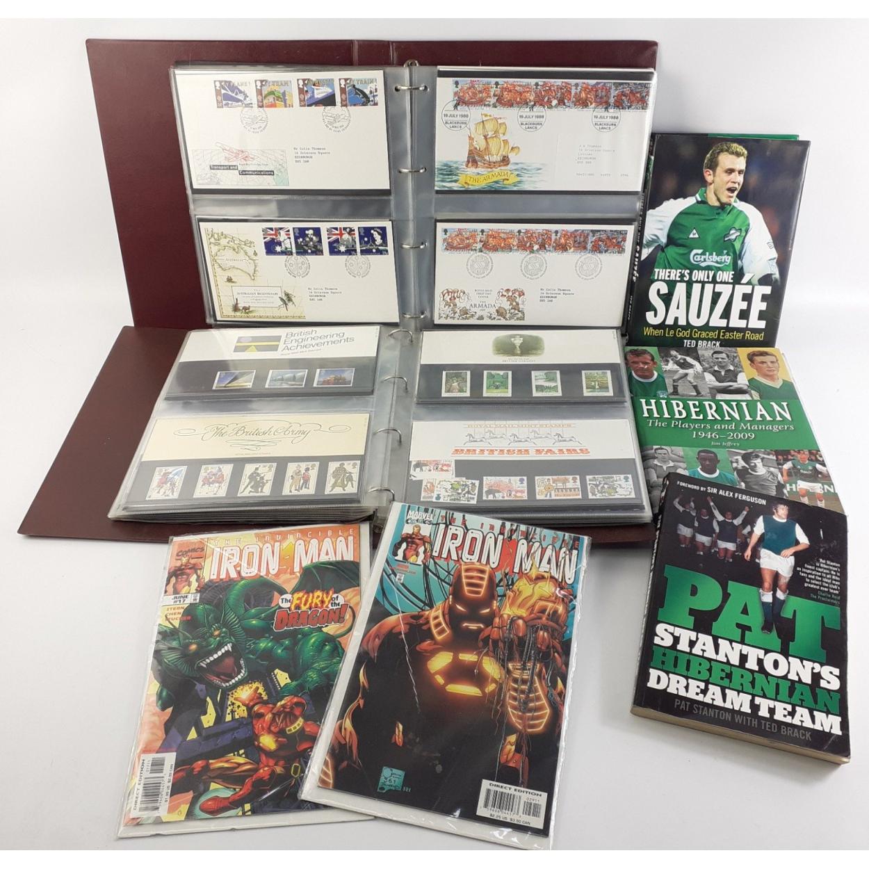 Two albums of First Day Covers with some comics and HIBERNIAN books.
