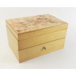 An attractive light wood jewellery box with lower drawer and mirror in lid. Comes with contents of earrings, necklaces, bangles etc