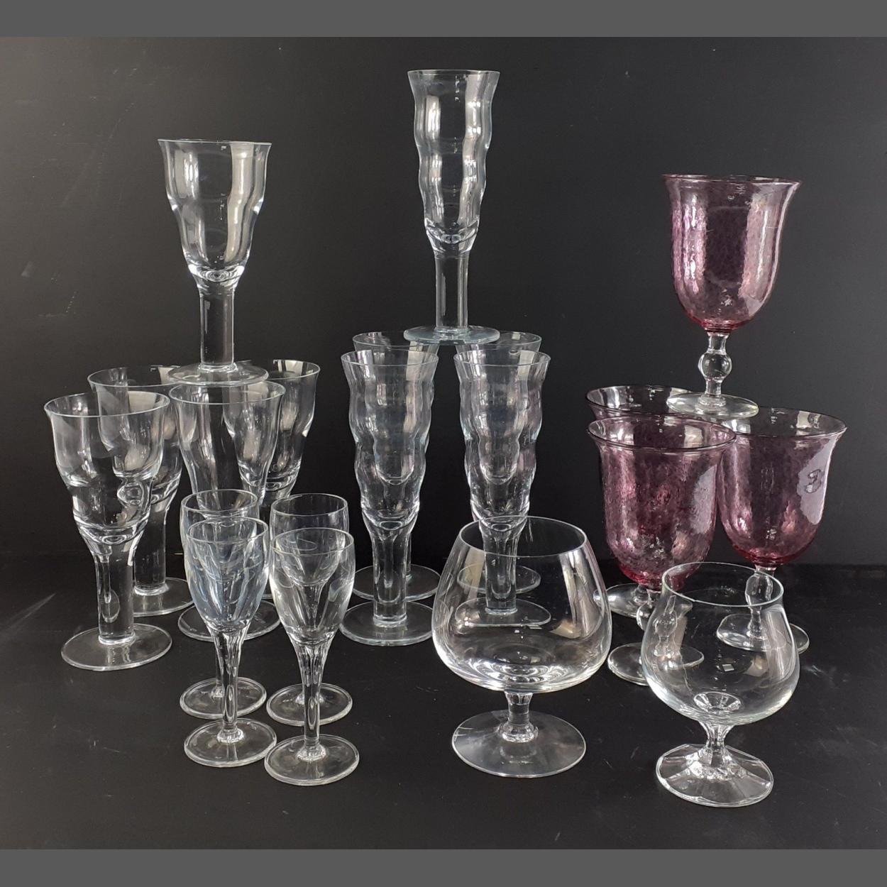 A box of glass wine glasses including two sets of 4 and a set of 6
