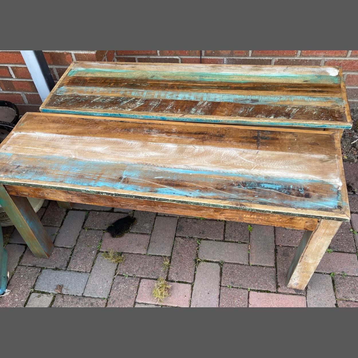 Three (I know only 2 pictured) distressed benches or tables dimensions 3ft x 18" approx