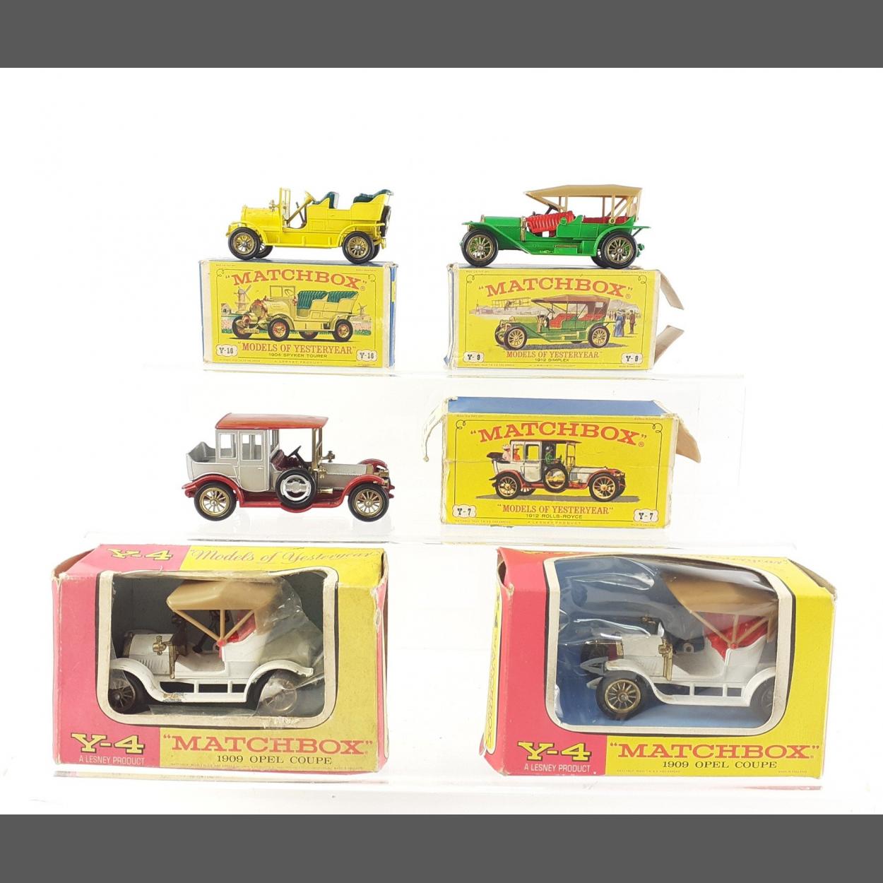 Collection of MATCHBOX cars to include Y4, Y7, Y9 and Y16. Boxes in worn condition