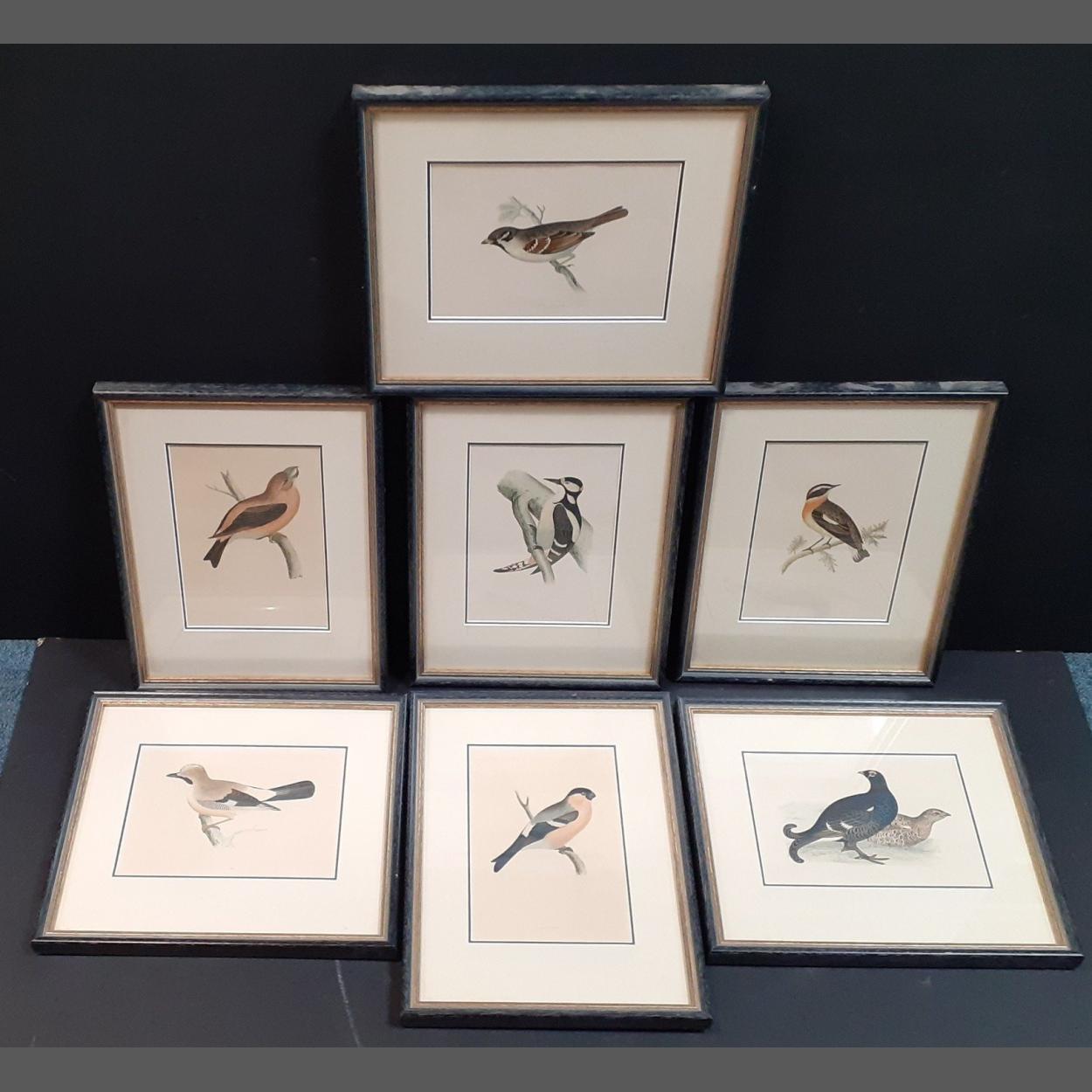 Seven wonderful bird prints. Pretty and decorative. Each nicely framed and measures 33cm x 26cm approx.