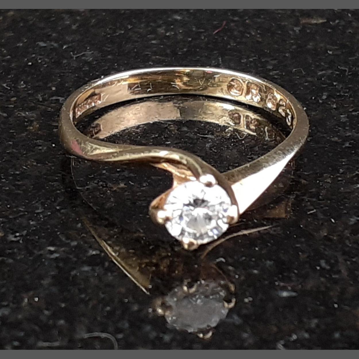 A diamond ring set in a 9ct twisted mount band. The diamond is 4mm approx. Size K, gross weight 1.6g approx.