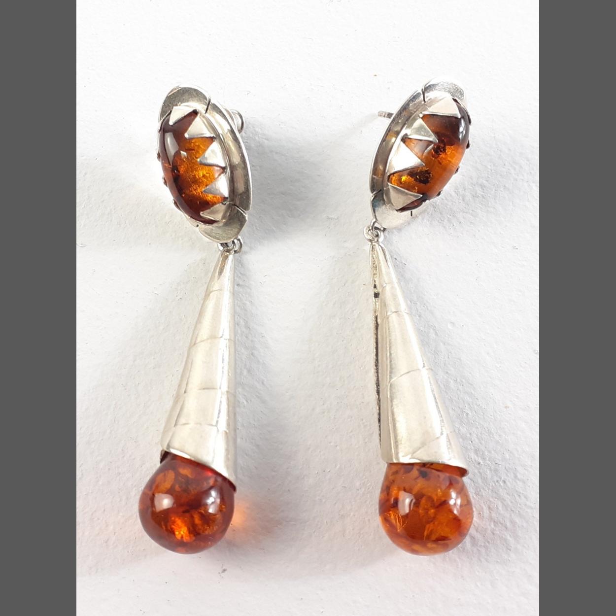 Edinburgh Hallmarked sterling silver earrings with amber stone centres and drops. Large and impressive statement earrings. Hallmarks for 1996. Makers stamp RLH. Length 55mm approx. Gross weight 10g approx