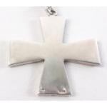 Large sterling silver Maltese Cross on sterling silver chain. The Cross measures 43mm approx. Gross weight 23g approx.