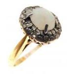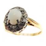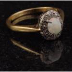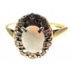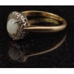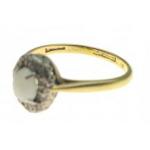 An 18ct and platinum stamped ring set with central Opal in a band of 10 x 0.02ct diamonds. Ring size P, Gross weight 3.2g aprox.