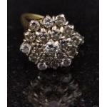 SPECTACULAR! A yellow metal ring (jeweller tested as 18ct) diamond three tier cluster ring. The centre diamond 0.2ct approx with six 0.15ct stones and a further 12 diamonds of approx 0.10ct each on the outer tier. NINETEEN lovely diamonds in total. Size P, Gross weight 7.6g approx