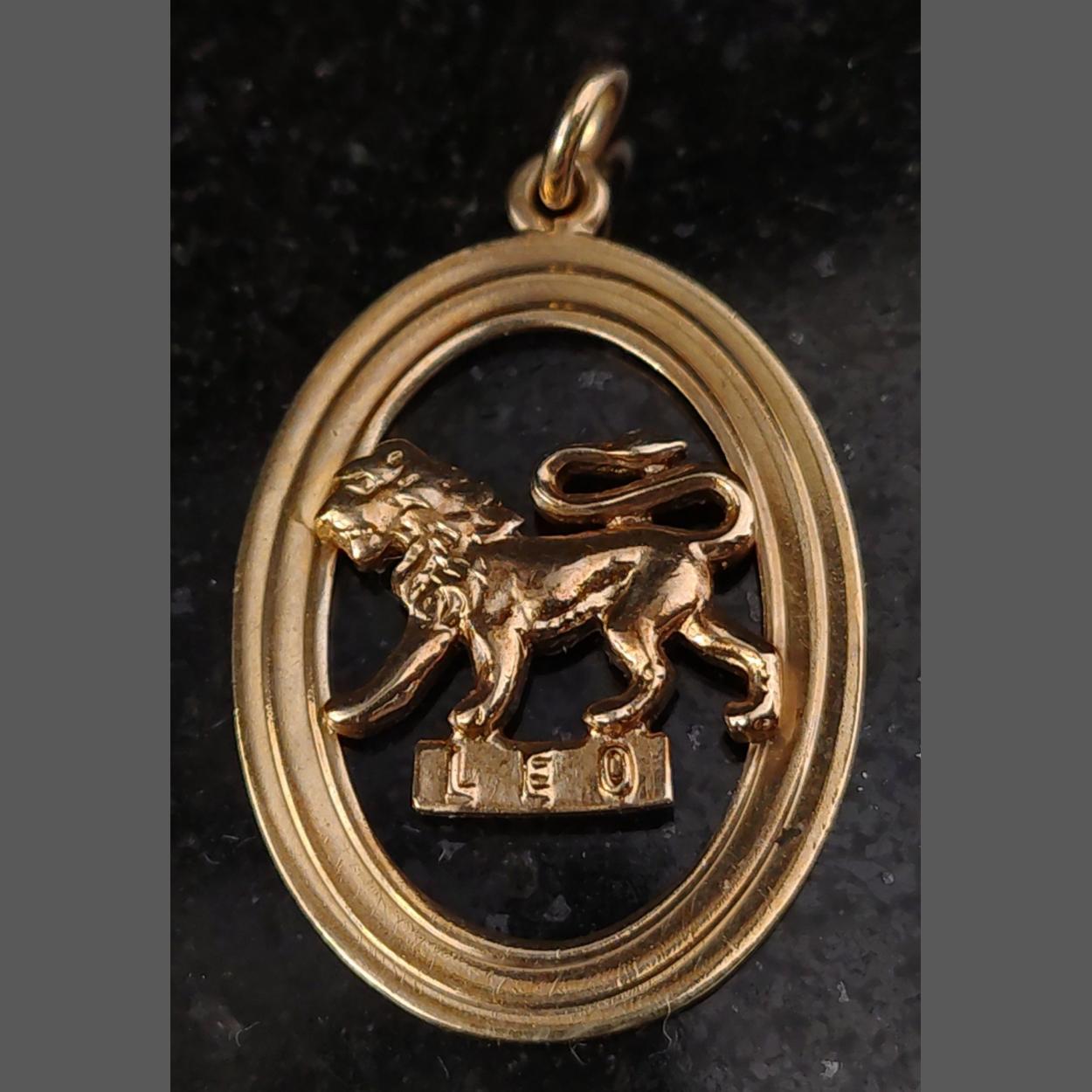 A 9ct pendant LEO zodiac sign. 25mm approx. Gross weight 1.8g approx.