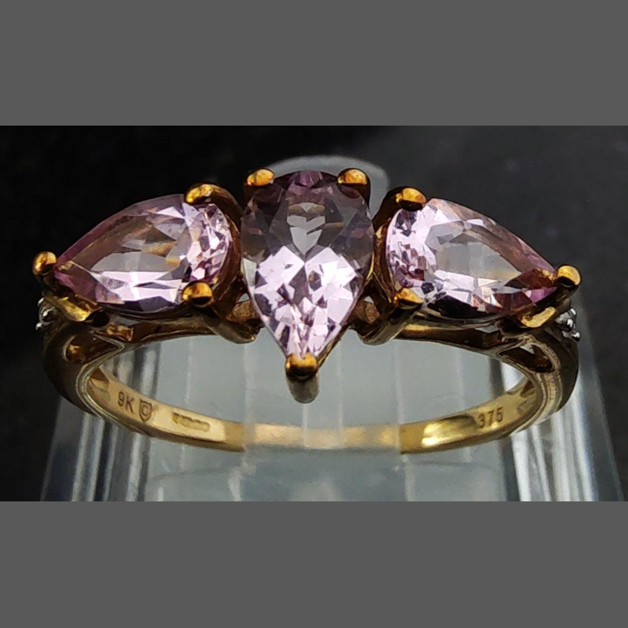 A 9k Birmingham hallmarked stamped Cherry Blossom Morganite (1.05cts) & Diamond ring - size L, limited edition one of 30 pieces made - gross weight 1.73g approx - comes with its authenticity certificate card