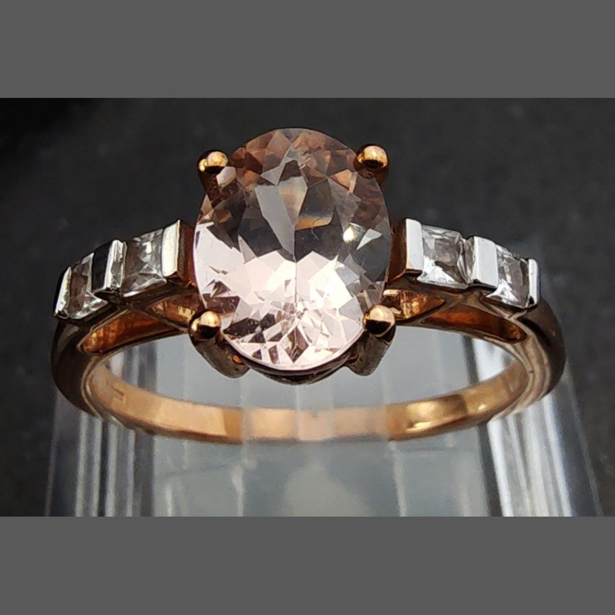 A 9k Birmingham hallmarked stamped rose coloured stone with surrounding zircon stones 1(.45cts) ring - size N/M - limited edition one of 30 pieces made - gross weight 2.12g gross - comes with its authenticity certificate card