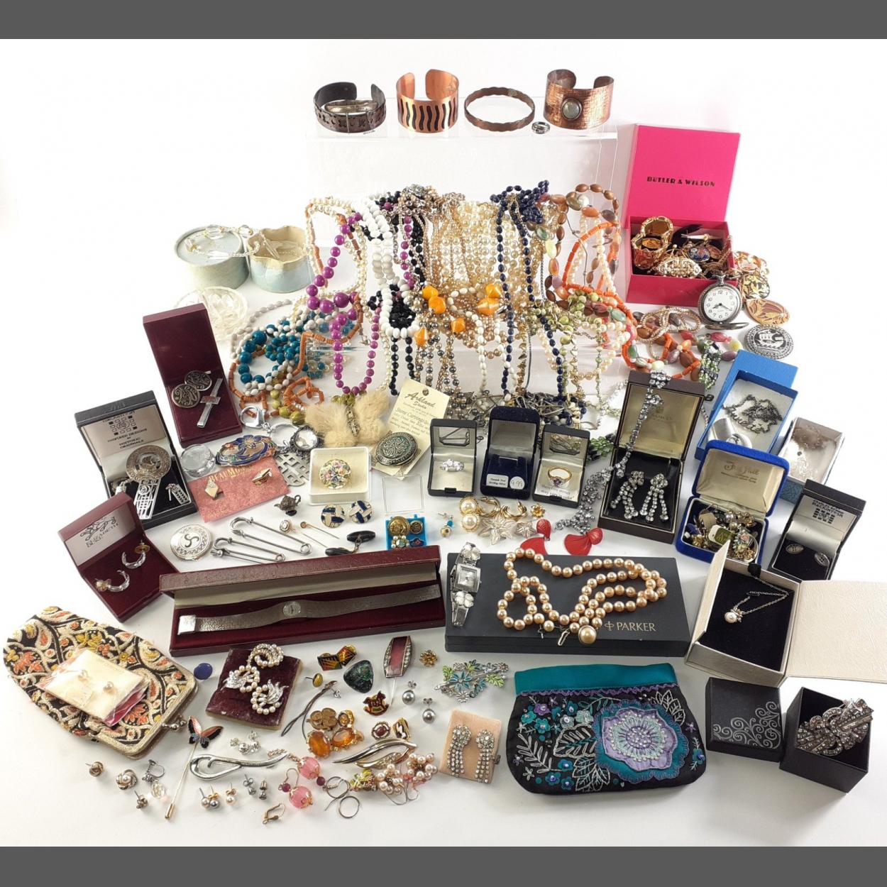 A large quantity of vintage costume and unmarked jewellery to include some silver items and a SCOTTISH SILVER BROOCH, a pocket watch, yellow metal unmarked chains and necklaces and much much more!