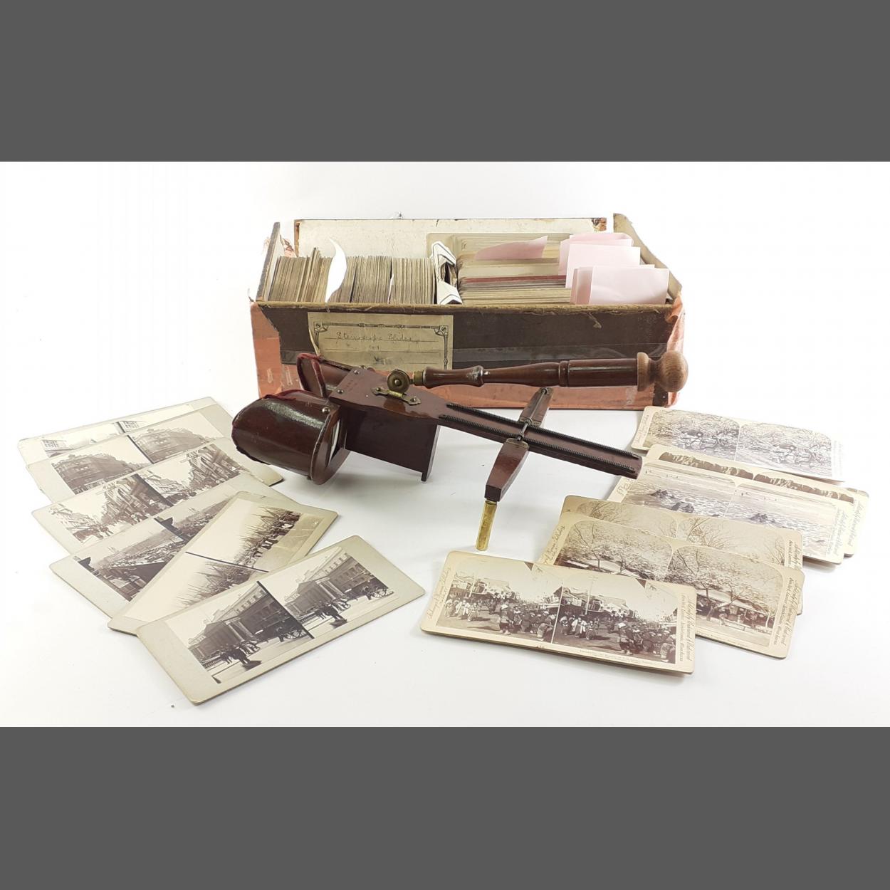 TRIUMPH Stereoscope with a selection of Stereographic cards. A wide range of themes including London scenes, Royalty, Buildings, Scottish scenes etc.