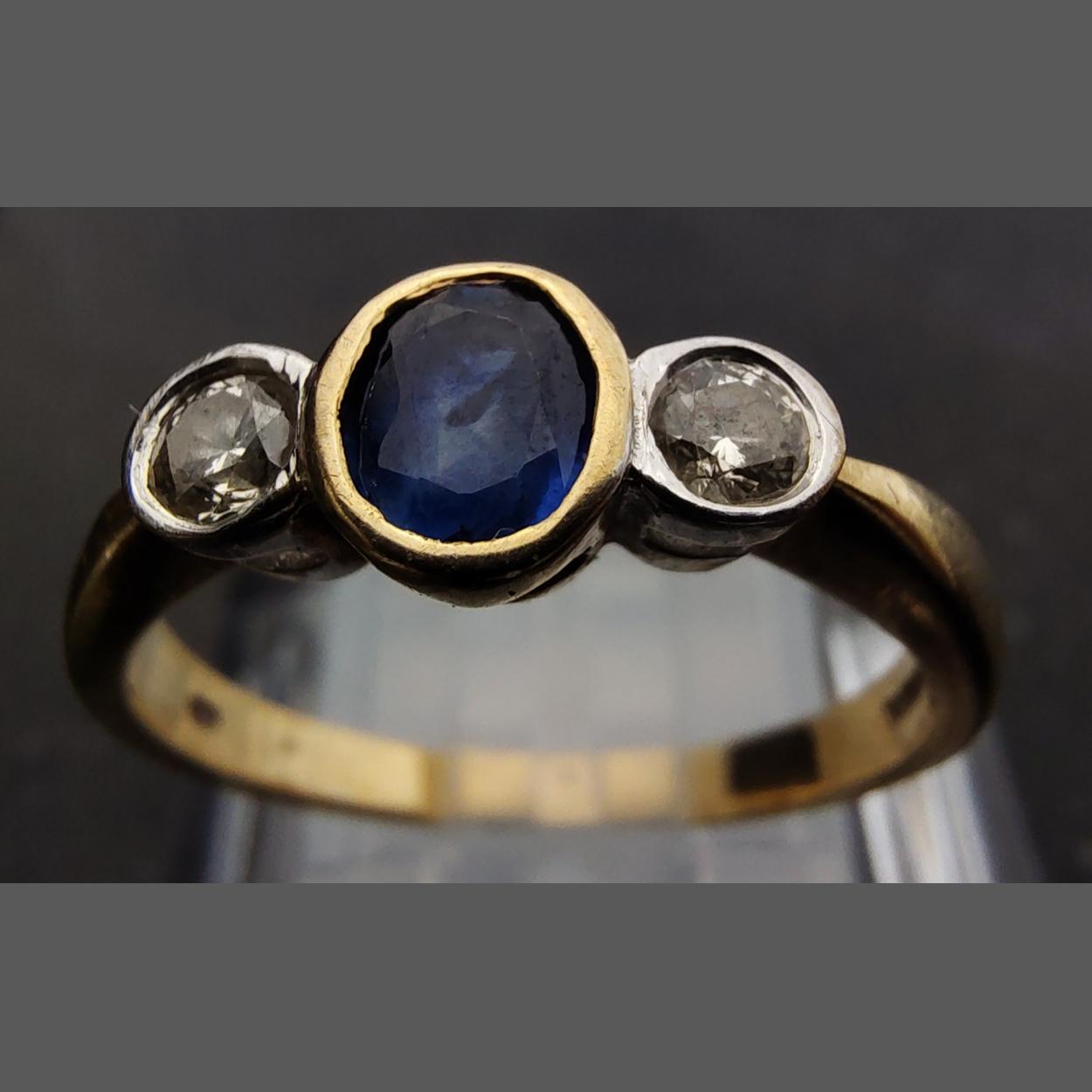 STUNNING QUALITY! A 375 stamped ring size O DIAMOND (tested) and SAPPHIRE inset ring - gross weight 2.20g approx