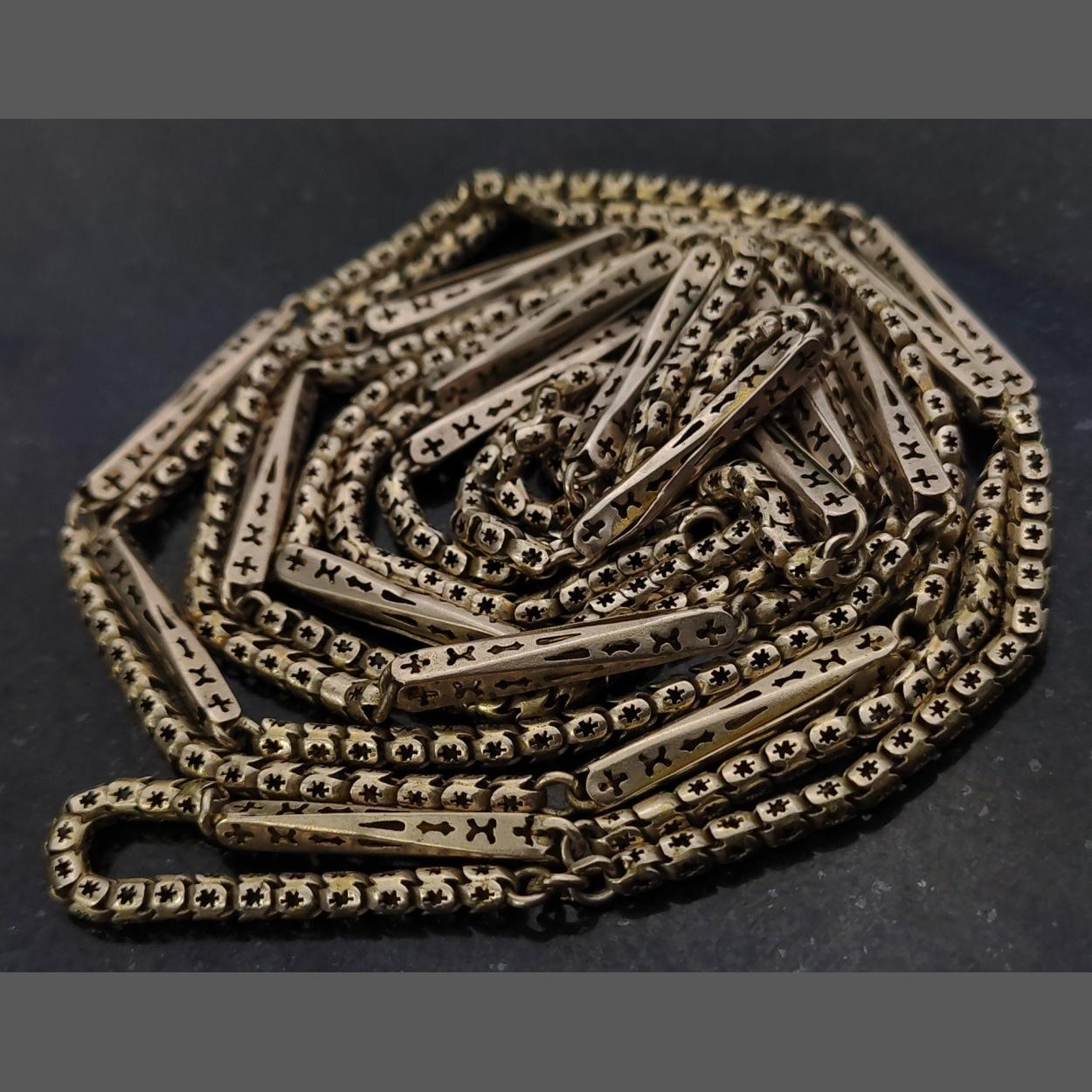 An unusual unmarked pierced barrel chain. A large 130cm approx in length.