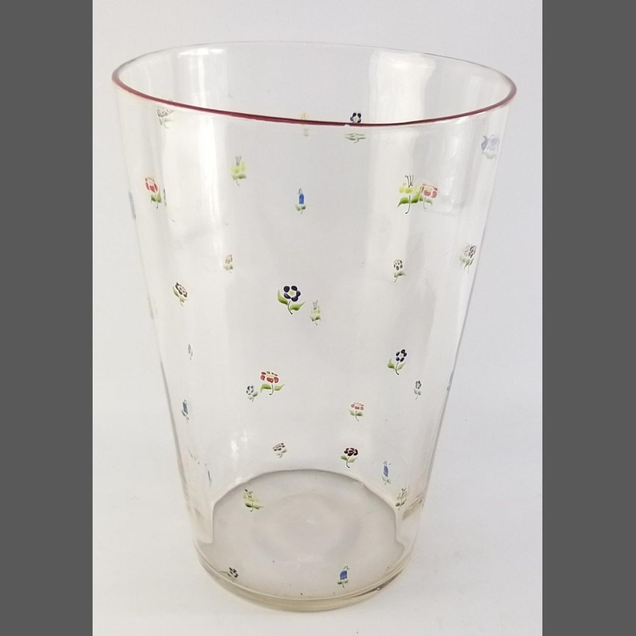 A large impressive stylish glass vase decorated with small flowers. Approx 30cm tall.