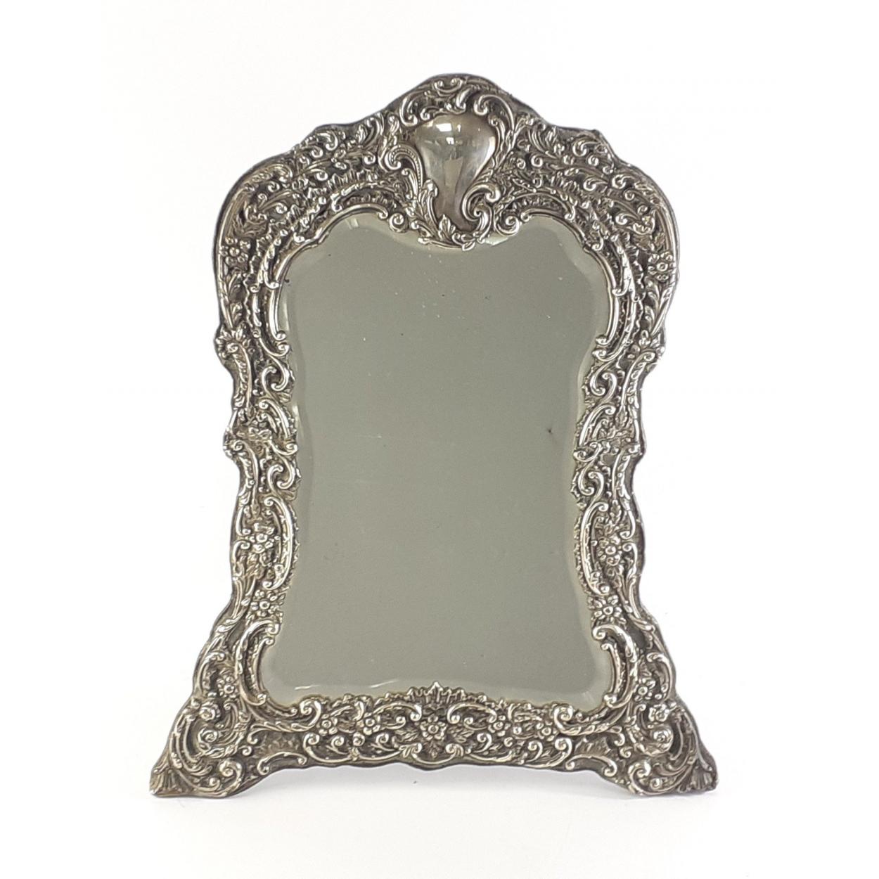 IMPRESSIVE ornate sterling SILVER hallmarked desk mirror. Hallmarks from 1900 Birmingham, makers HM. Measures 43cm x 34cm approx.(17" x 13")