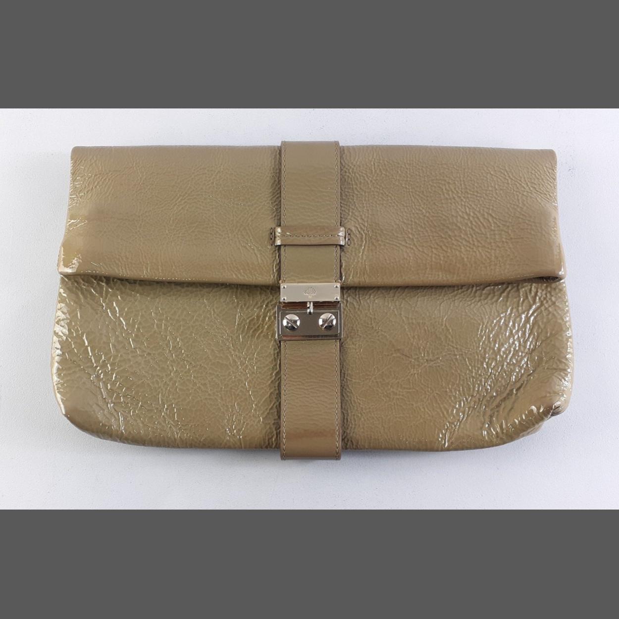 A khaki coloured leather MULBERRY clutch bag. Opened measures 30 x 28cm approx