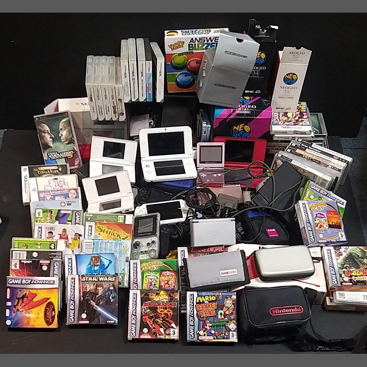 An amazing collection of Video Games, Consoles, Handhelds with games. NINTENDO DS x6, SONY PSPs x4, SONY PS2, Many MANY boxed PSP and NINTENDO DS GAMES. A great lot to go through !