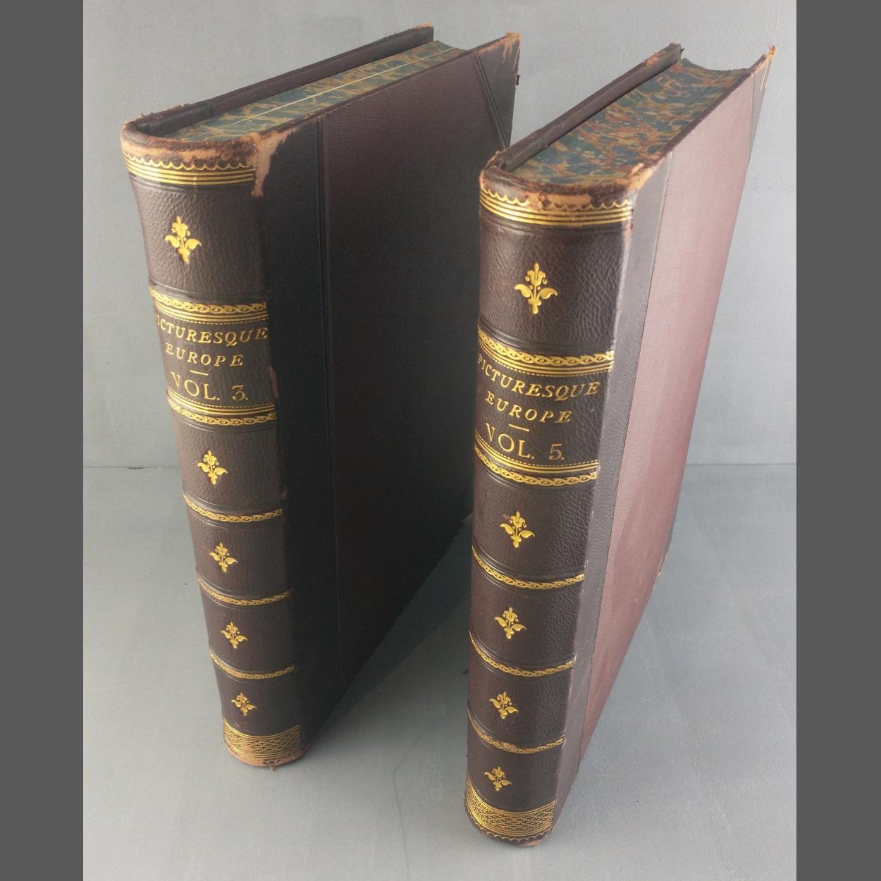 Two interesting volumes PICTURESQUE EUROPE with steel and wood engravings. Lots of interesting illustrations. Volumes 3 & 5 only.