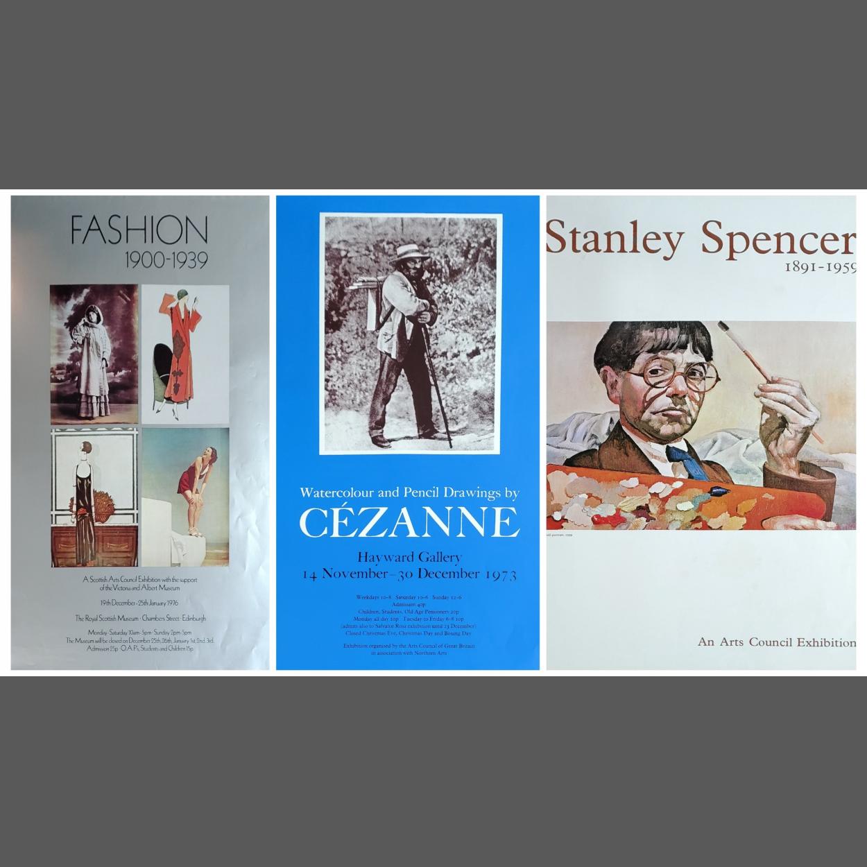 Art Council exhibition posters. STANLEY SPENCER, CEZANNE, FASHION 1900-1939. Each 75cm x 50cm approx.
