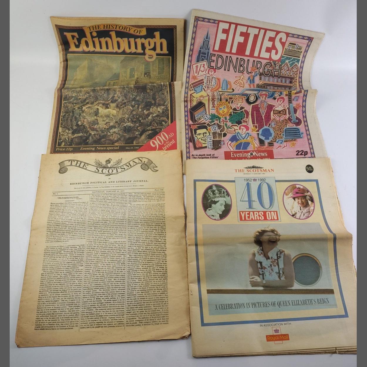 Small collection of antique newspapers. Includes a 1817 'THE SCOTSMAN' and others.
