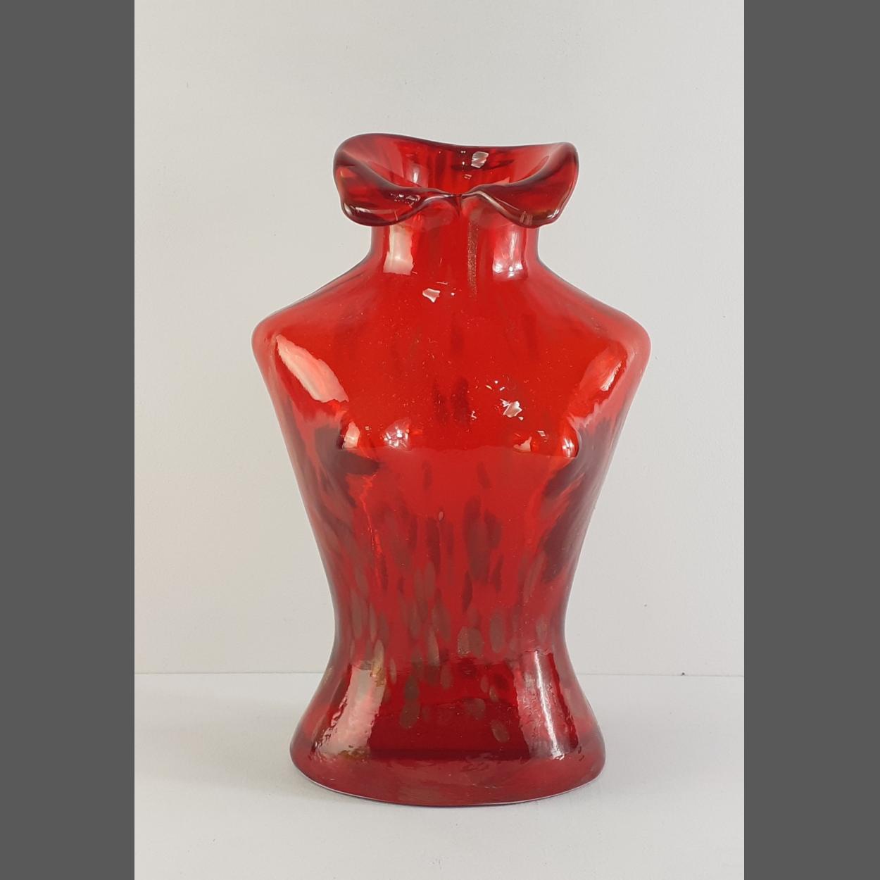 A super red glass vase in the shape of a female form, stands 30cm approx