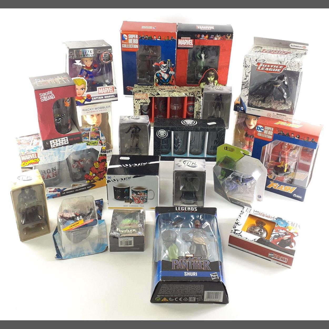 MARVEL and DC box figures, HULK, IRON MAN Glasses, The Flash, Justice League and much else.