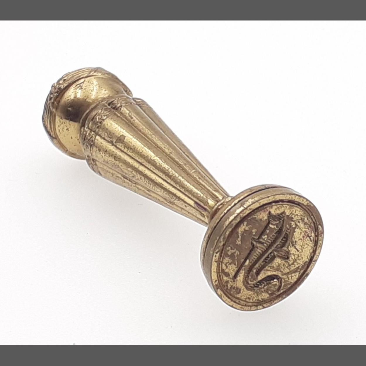 A Victorian gentleman's brass hand seal with screw fitted monogram seal carrying Rd Mark 438061