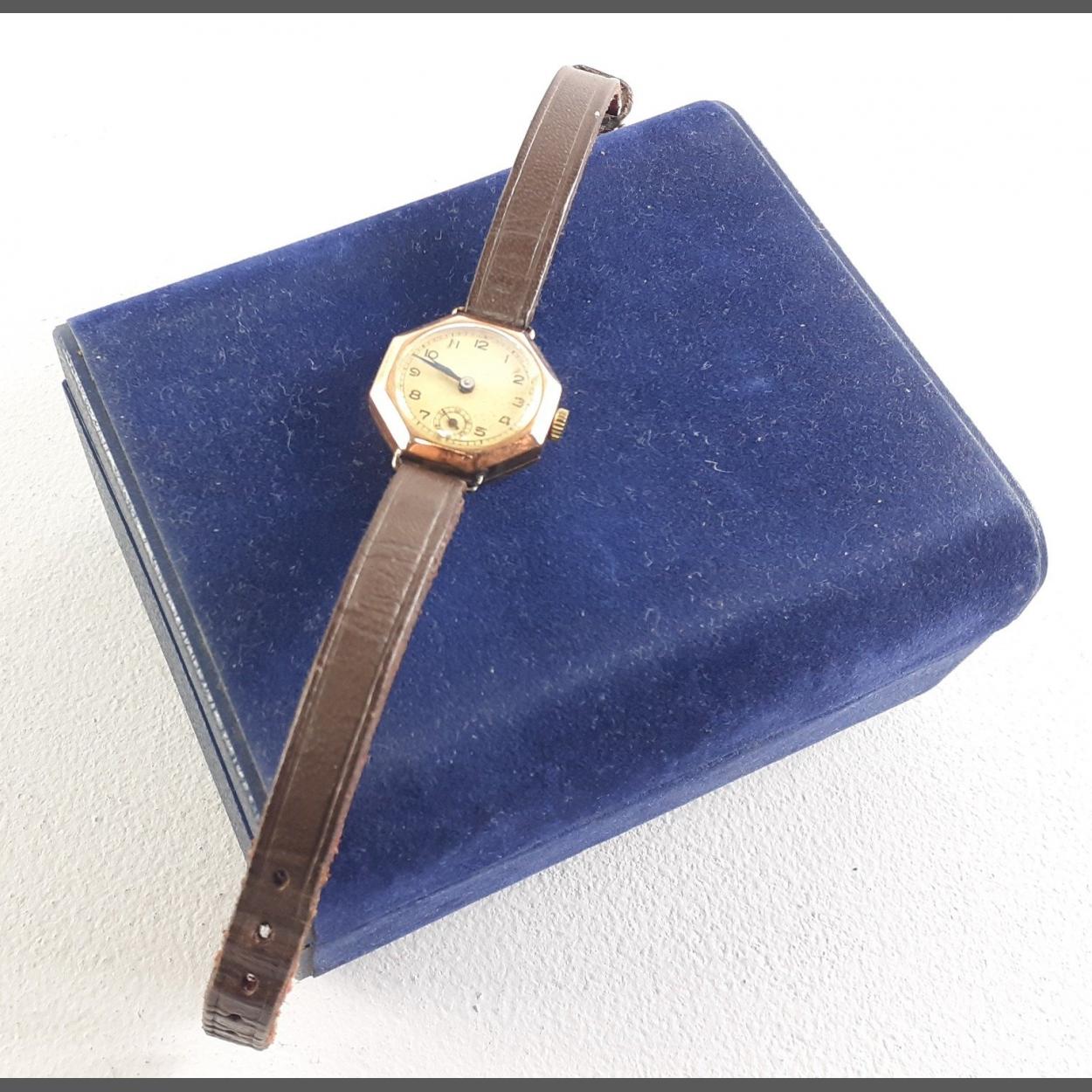 A 375 marked 9ct ladies cocktail watch with 15mm dial. Case weighs 9.5g approx.