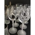 A small glassware lot to include 6 large wine glasses, 6 hi-ball glasses and crystal posy vases and bowls plus a silver plated coffee pot and small tankard.