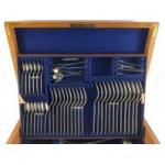 A large canteen of plated cutlery in wooden presentation display box, three drawers. All in good useable condition